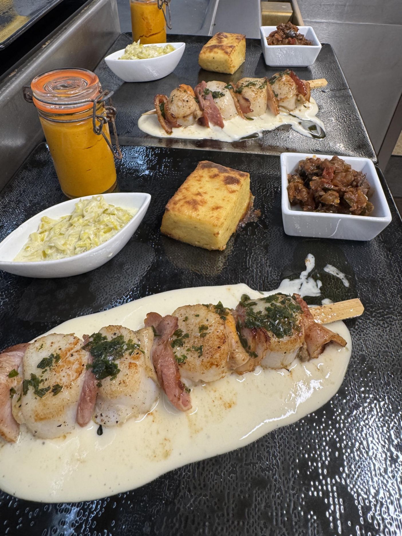 La brochette de St Jacques au lard fumé